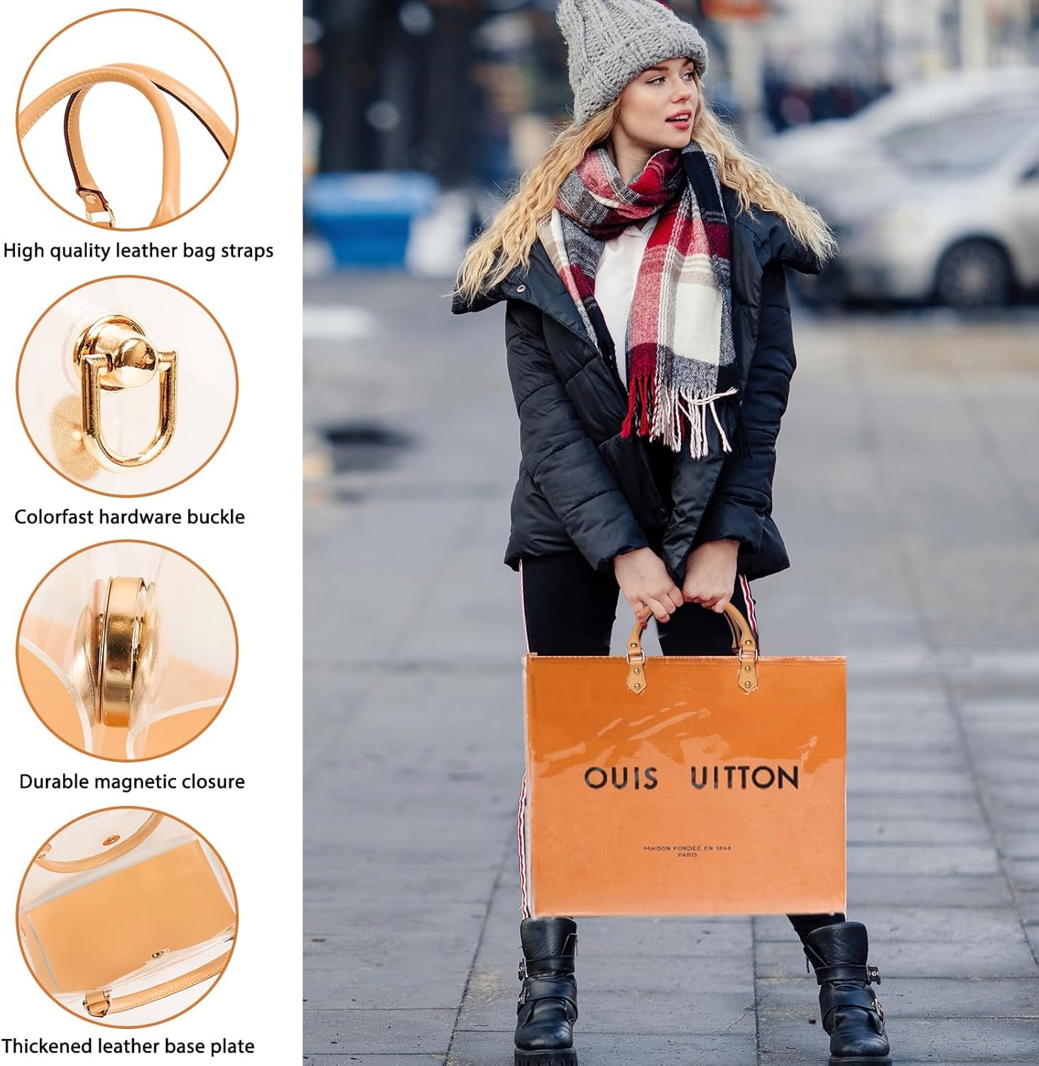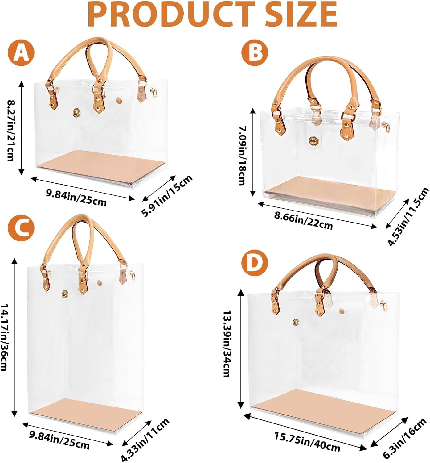 - PRODUCT MATERIAL: The body of the bag is made of transparent PVC material, leather carrying strap, and high quality metal hardware accessories, lightweight and durable