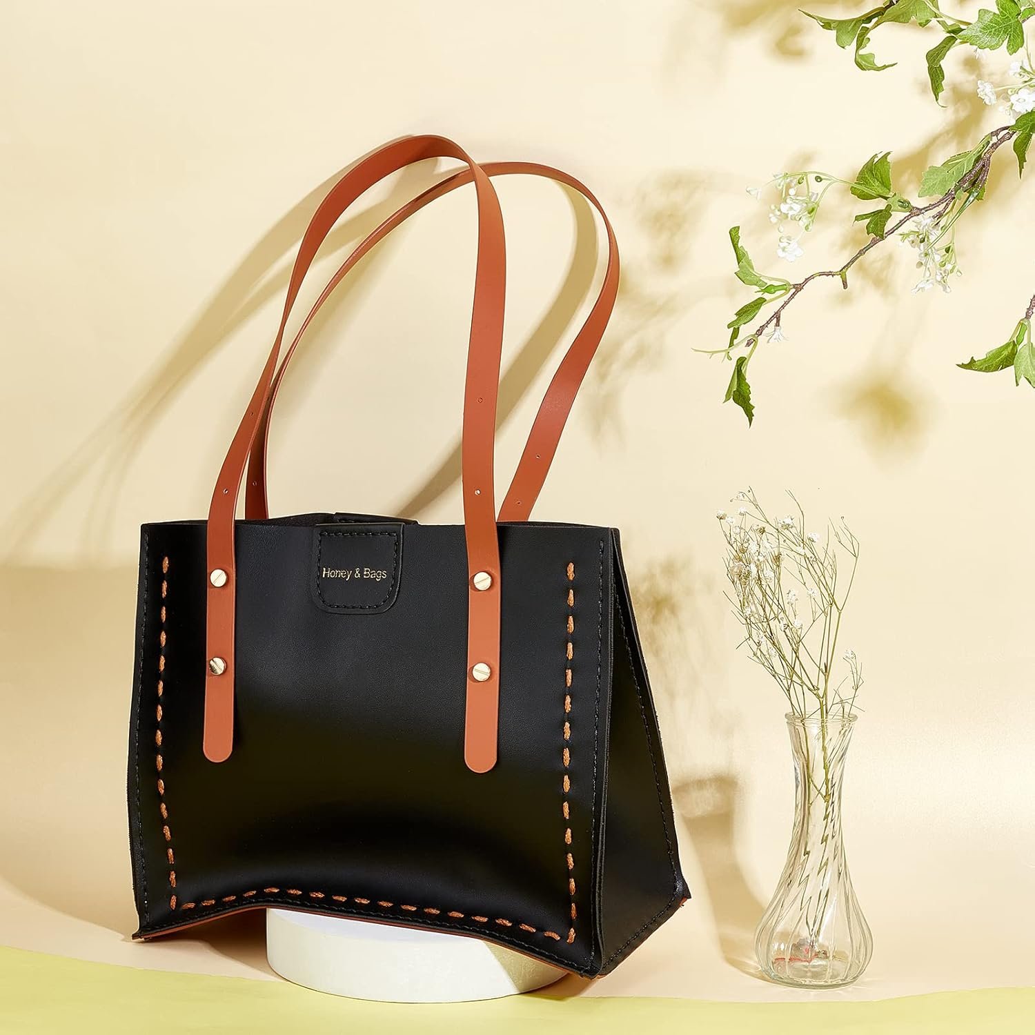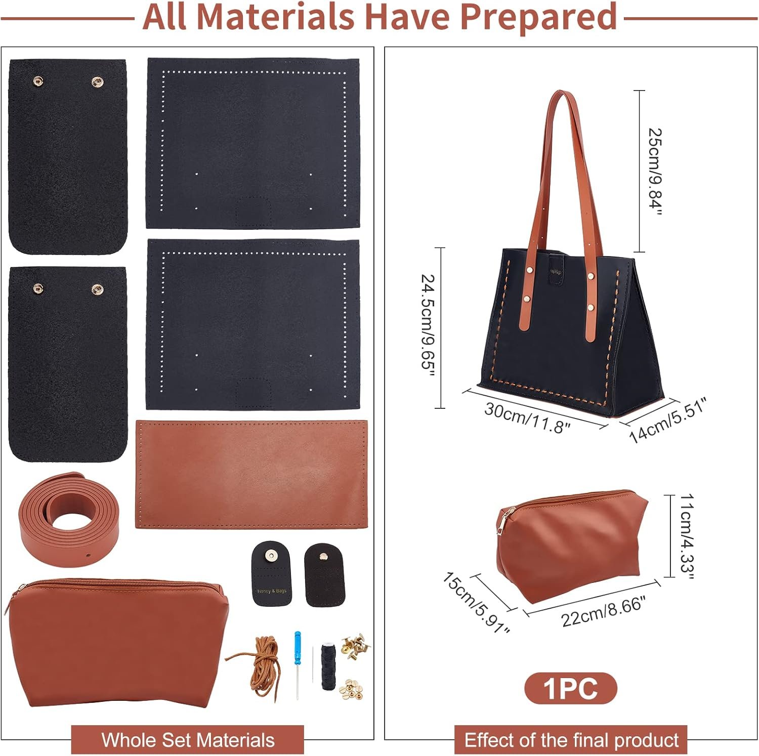 - DIY Tote Bag Kit: you will get a whole set to DIY a large capacity leather tote bag, includes 5pcs bag body, 2pcs bag strap, screw nuts, buckles, 1pc liner organizer bag, 1 bundle waxed knitting string, 1pc needle and 1pcs srewdriver.
